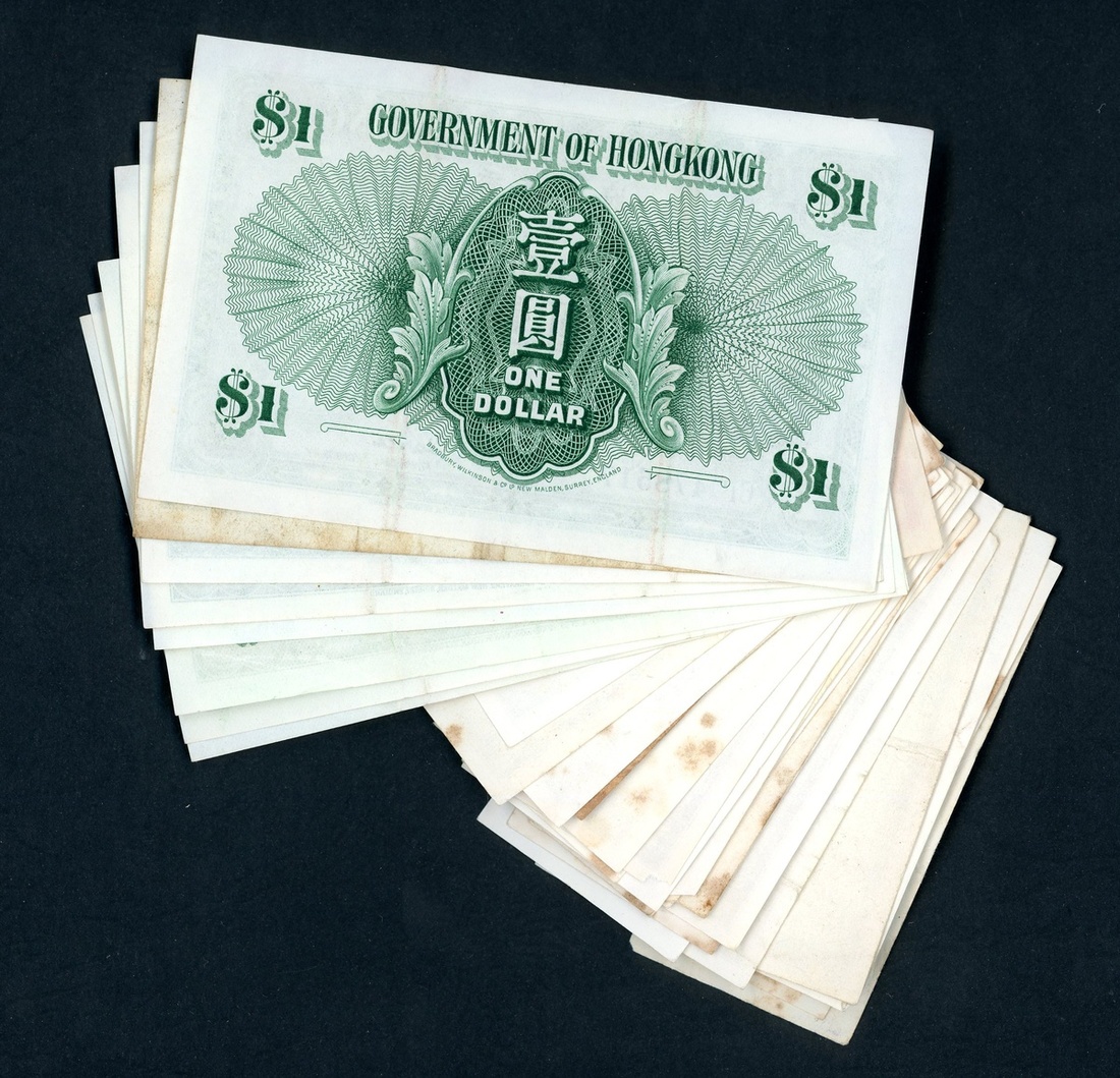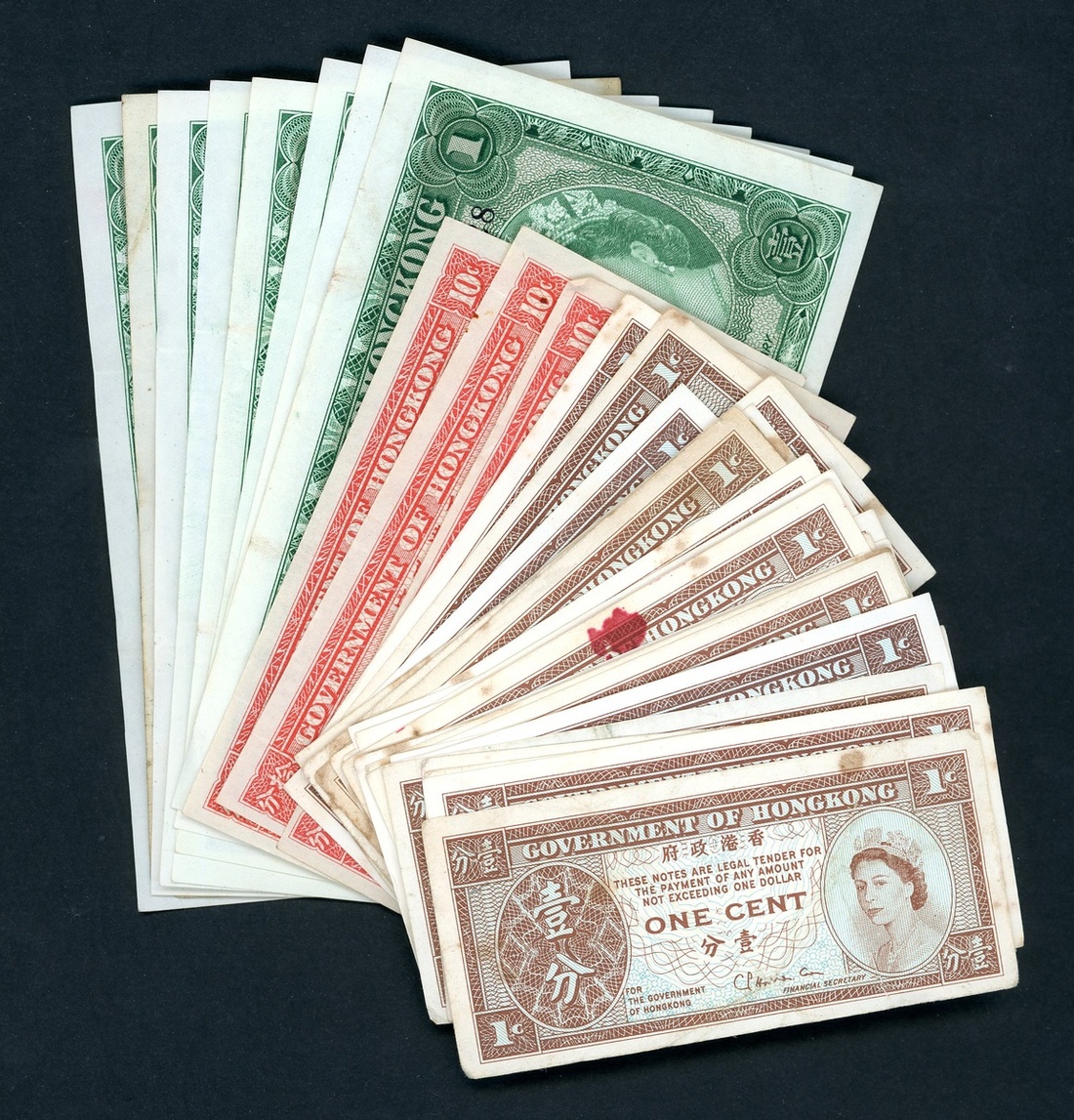 Hong Kong Government, a group of 29x 1 cent, 3x 10 cent and 8x $1, (Pick 323, 325, 324Ab), some with stains, very fine to good extremely fine.(40)