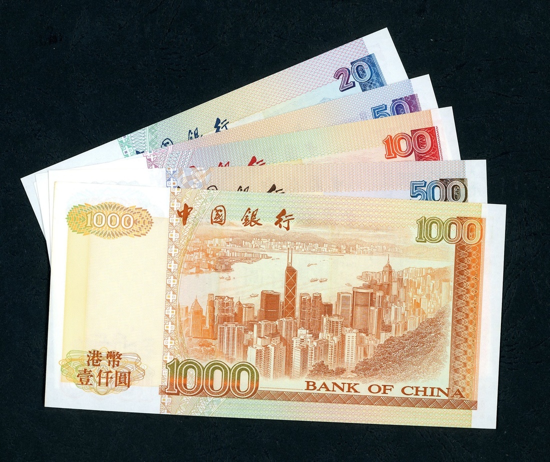 Bank of China, Hong Kong, a set of the 1994 issue, serial number all ending in '282', including $20, $50, $100, $500, $1000, the $500 and $1000 matching serial number 222282,