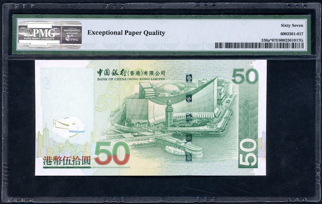 Bank of China, Hong Kong, $50, 1.1.2003, replacement serial number ZZ019964, (Pick 336a*), PMG 67EPQ Superb Gem Uncirculated