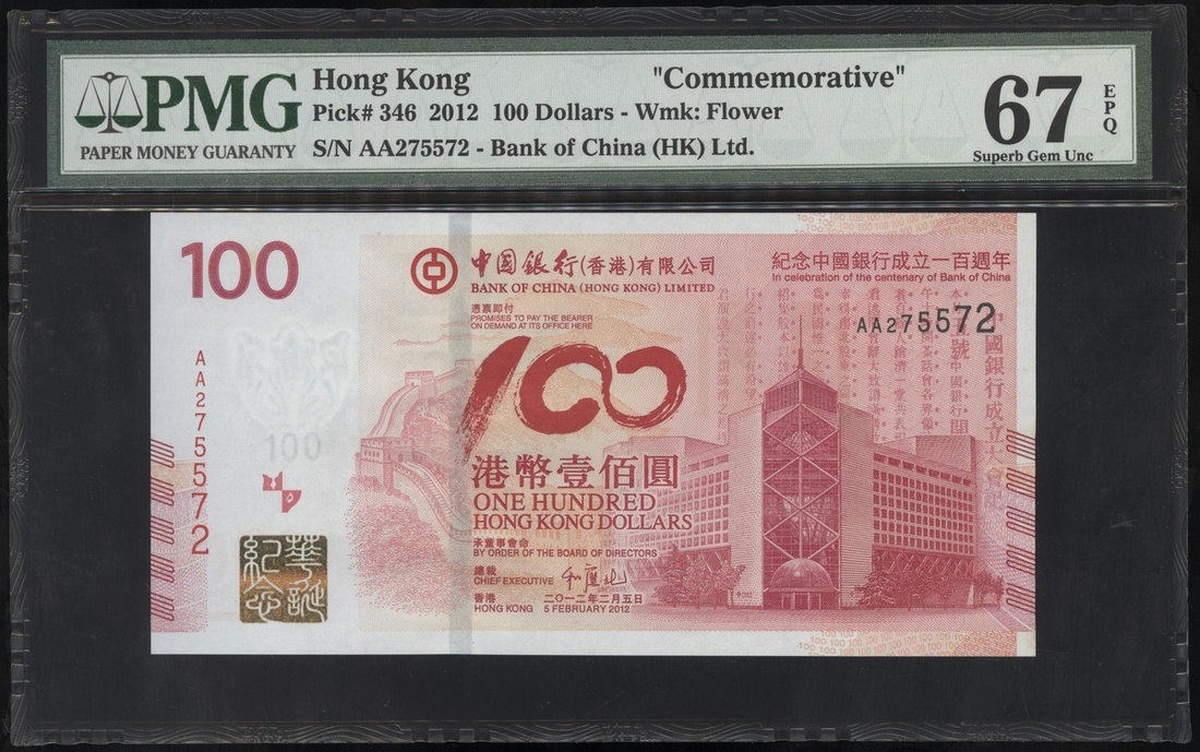 Bank of China (Hong Kong), (Pick 346), PMG 67EPQ Superb Gem Uncirculated