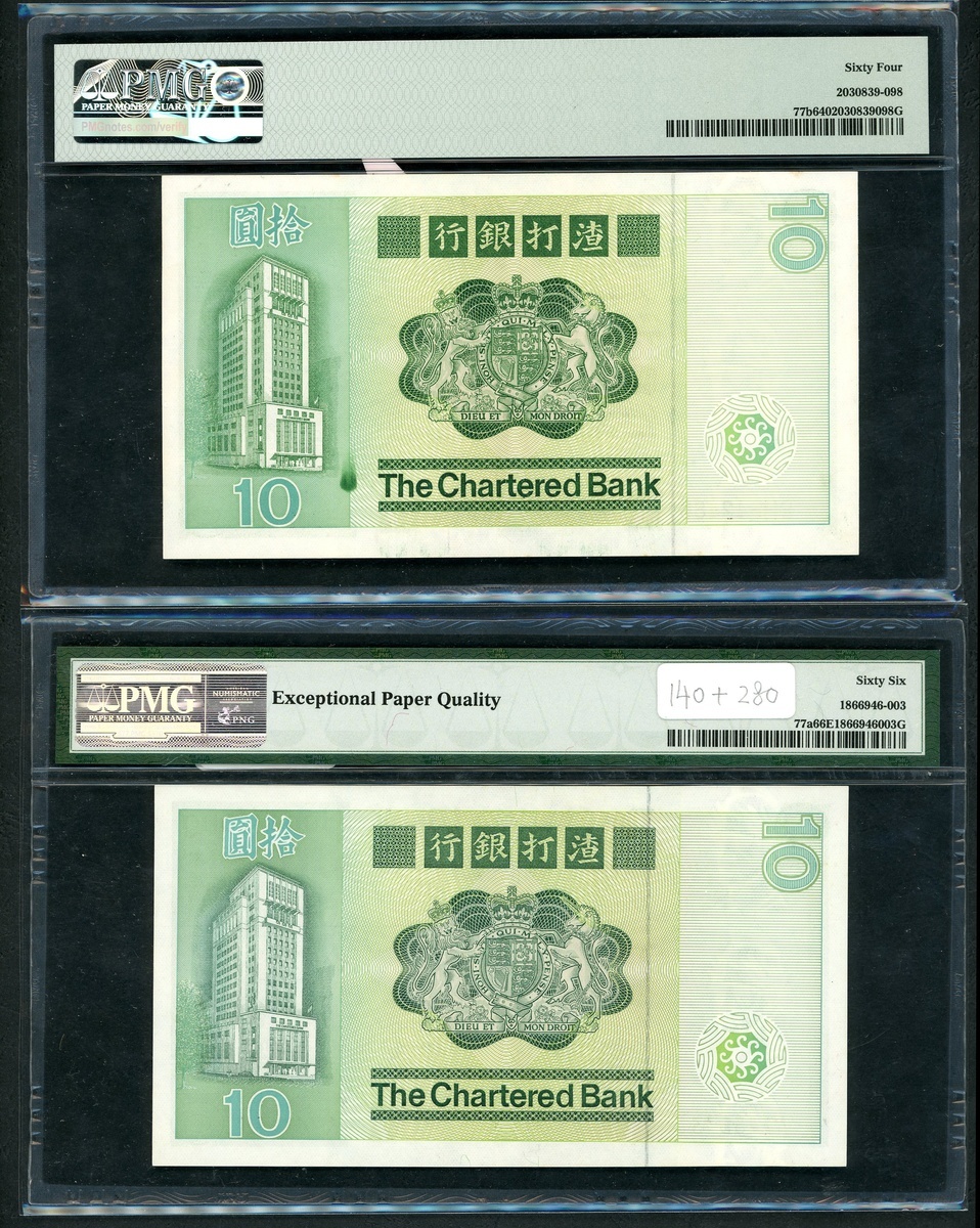 渣打銀行10元一組5枚,包括錯體及補版,評分及品相請參考圖片及英文描述