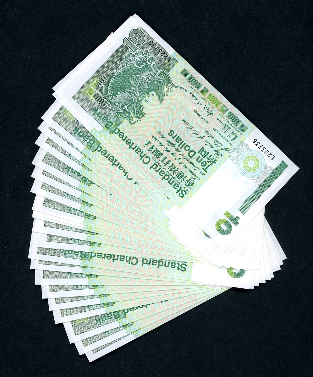 Standard Chartered Bank, a group of 116x $10, 1.1.1993 and 1.1.1995, several consecutive serial number groups, consists of L223721-730, 738-741, 792-800, AH759048-100, CY322317-320, 323, 333, 354-399, (Pick 284a and 284b), uncirculated, with mild stain at paper edges (116)