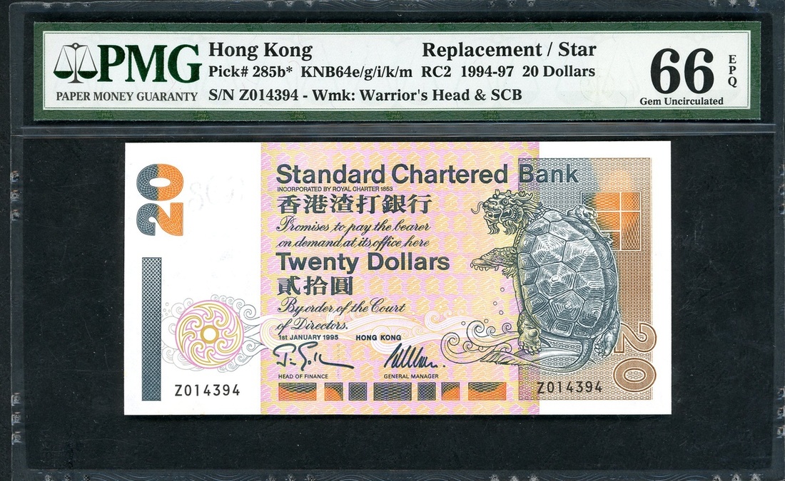 Standard Chartered Bank, Hong Kong, $20, 1995, replacement, serial number Z014394, (Pick 285b*), PMG 66EPQ.