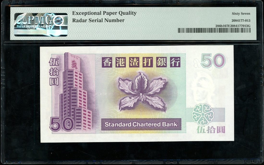 1997年渣打銀行50元,編號A605506,PMG 67EPQ