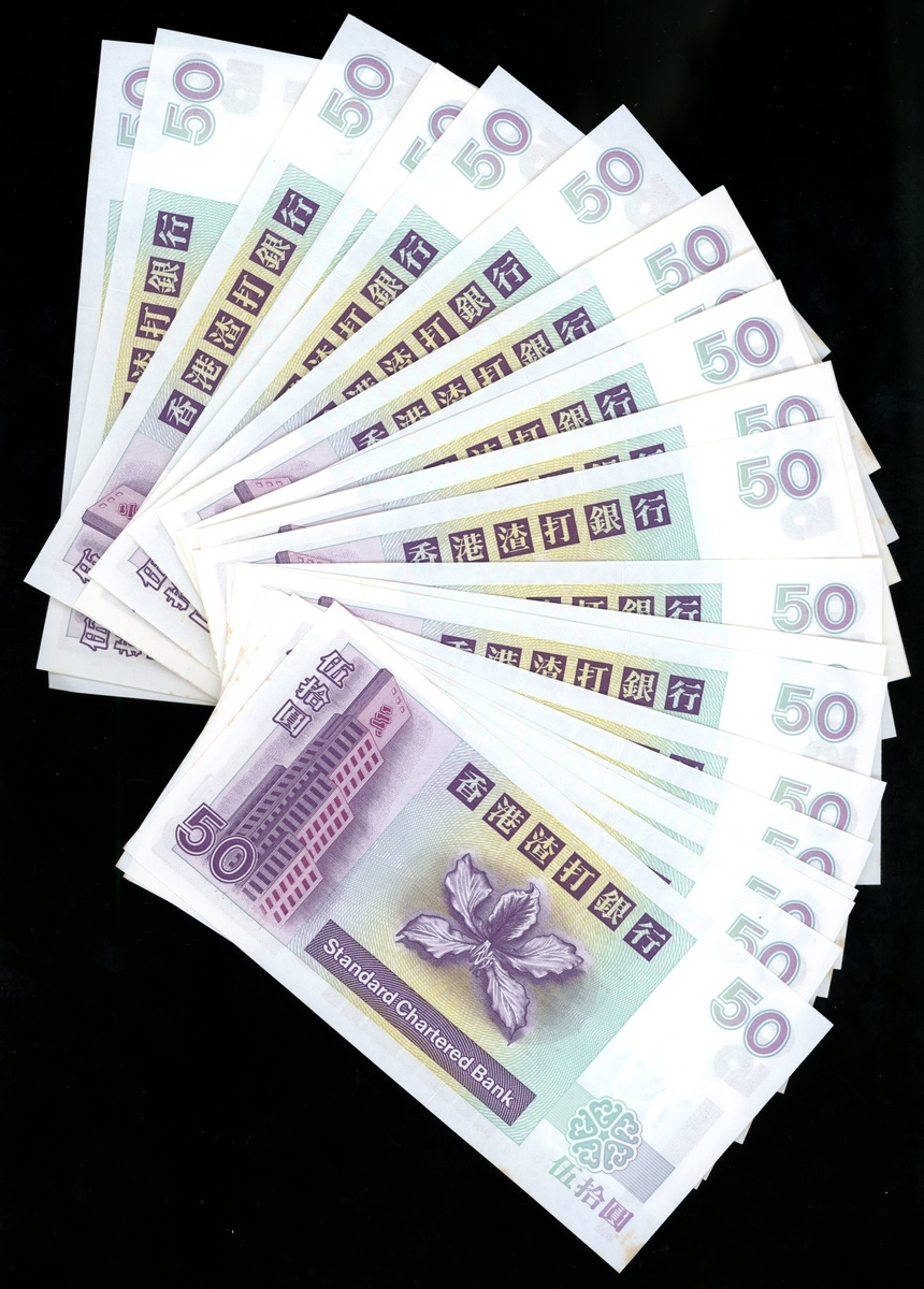 Standard Chartered Bank, Hong Kong, a consecutive group of 31x $50, 1.1.1997, serial numbers P304346-376, (Pick 286b), uncirculated, with stains at egdes (31)