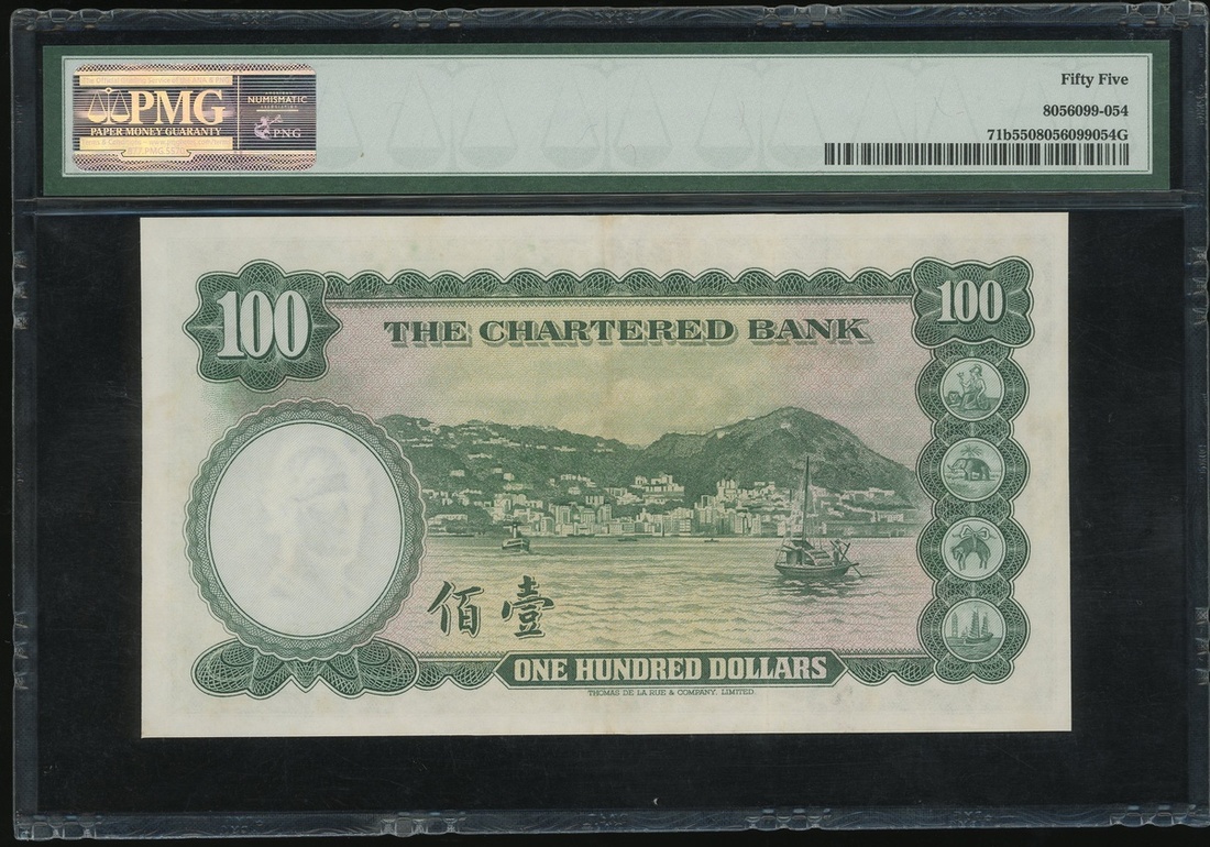 The Chartered Bank, $100, ND (1961-70), serial number Y/M 1907235, (Pick 71b), PMG 55 About Uncirculated, minor foxing