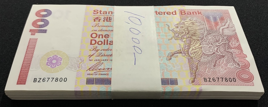 1996年渣打銀行100元連號100枚,編號BZ677701-800,包括BZ677777,UNC品相,有些邊沿有發黃