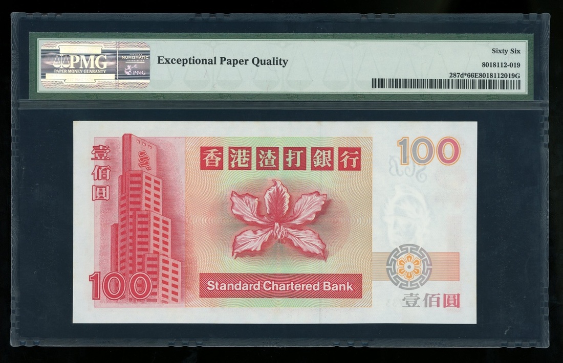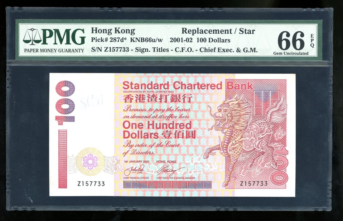Standard Chartered Bank, Hong Kong, $100, 1.1.2001, replacement serial number Z157733, (Pick 287d*), PMG 66EPQ Gem Uncirculated
