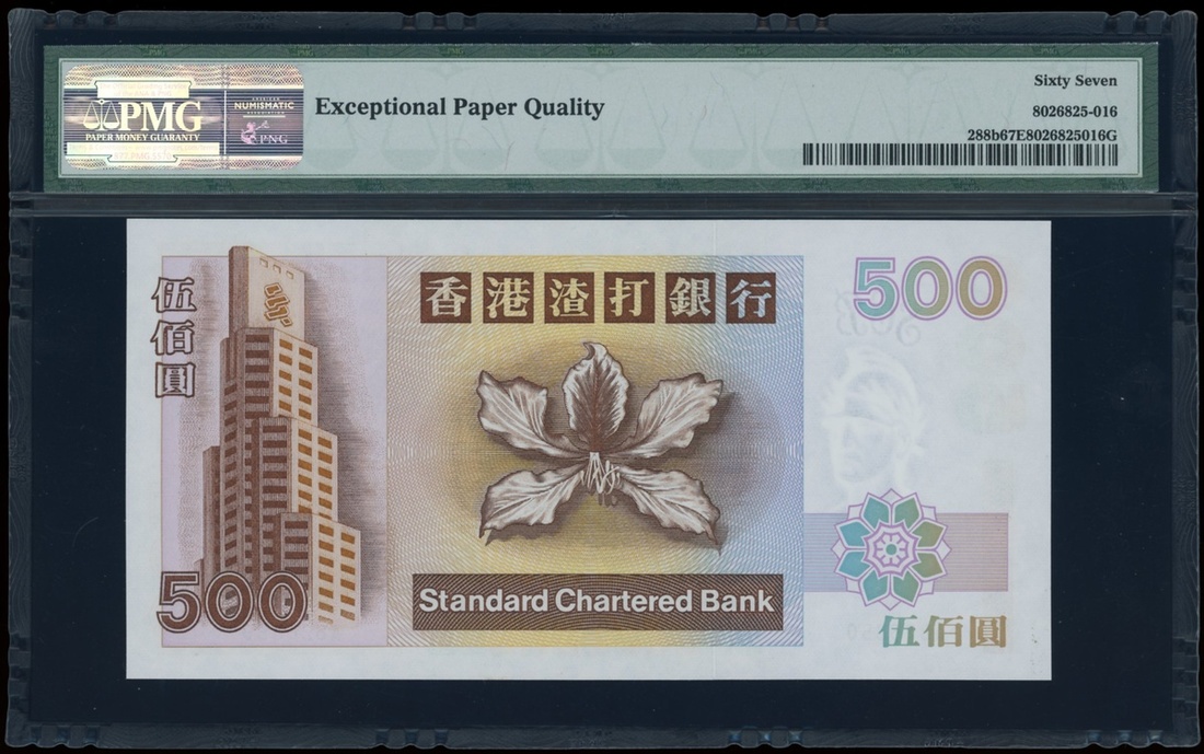 1997年渣打銀行500元,編號A826850,PMG 67EPQ