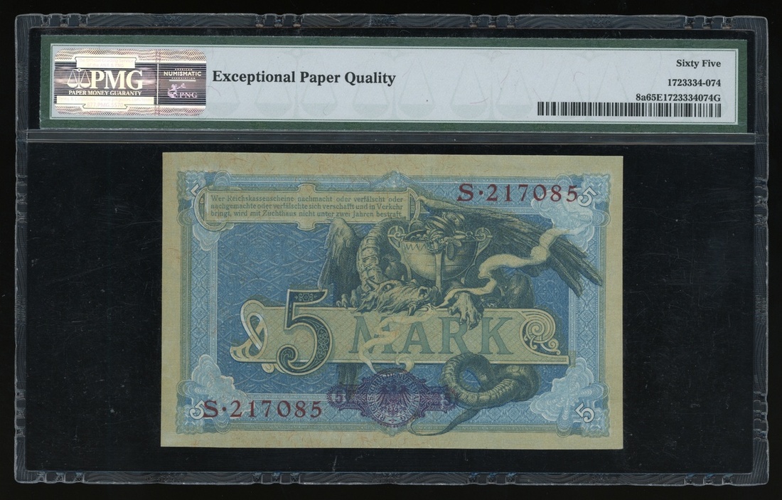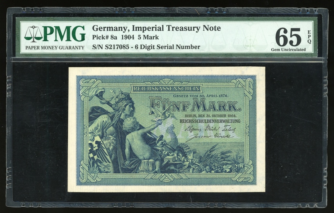 1904年德國5馬克,編號S217085,PMG 65EPQ