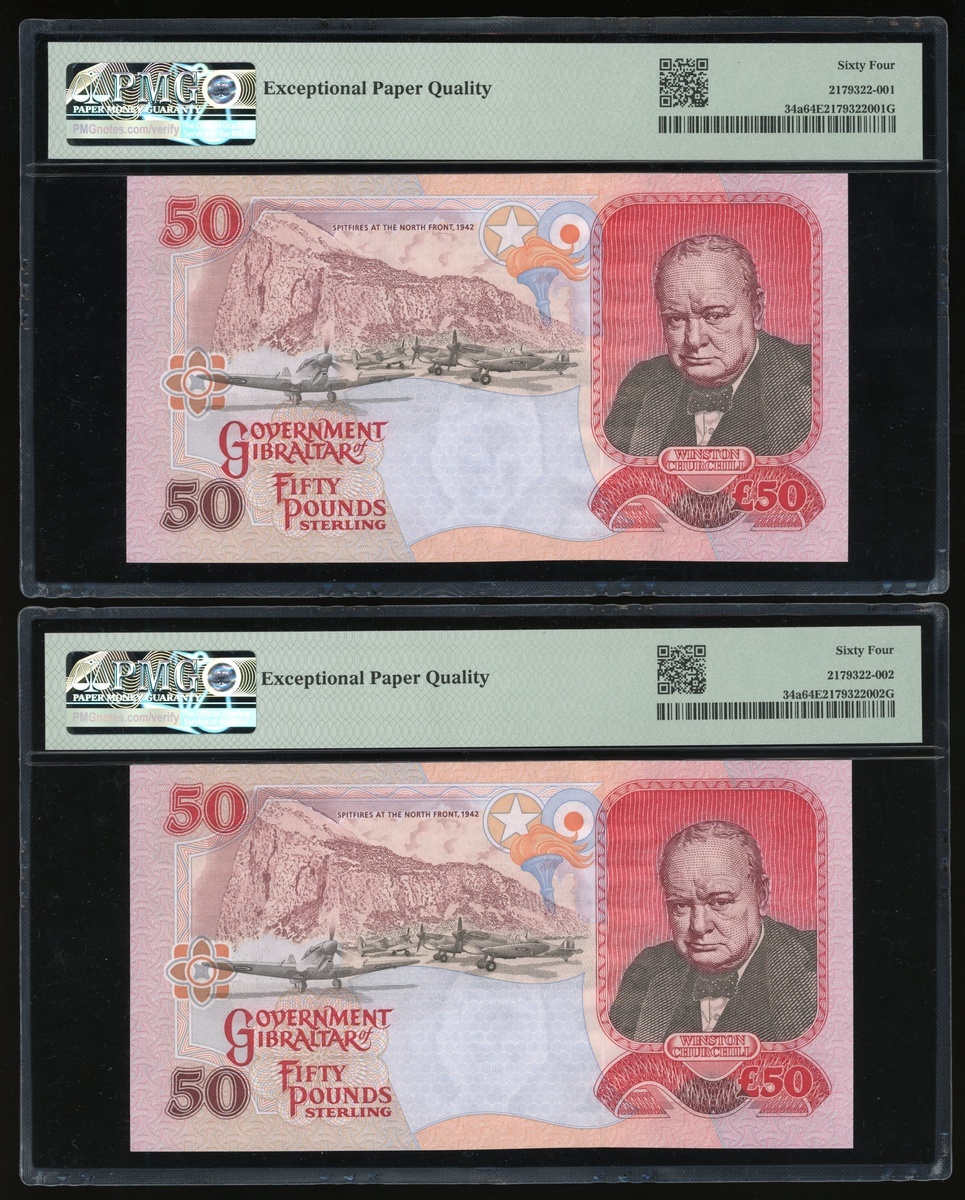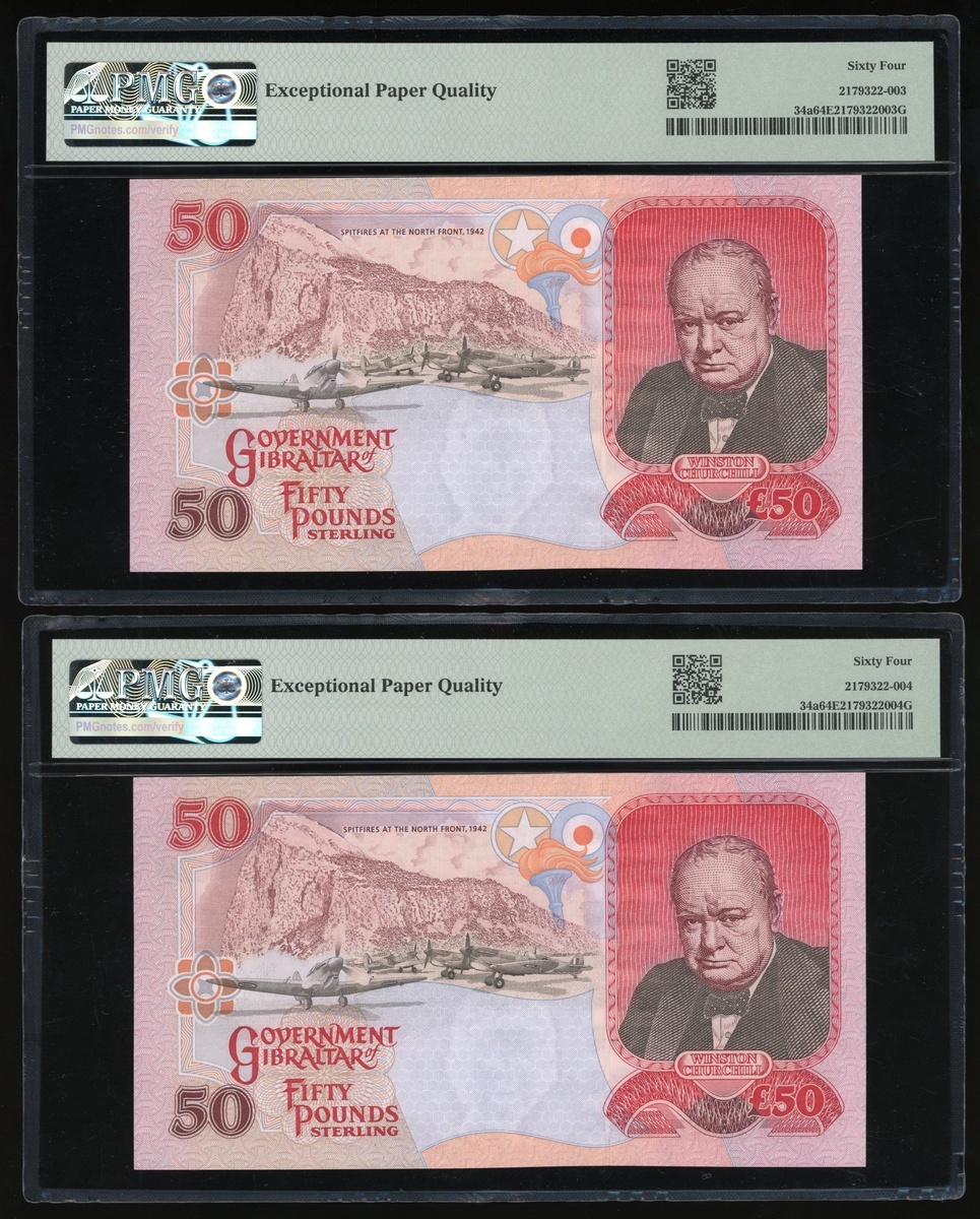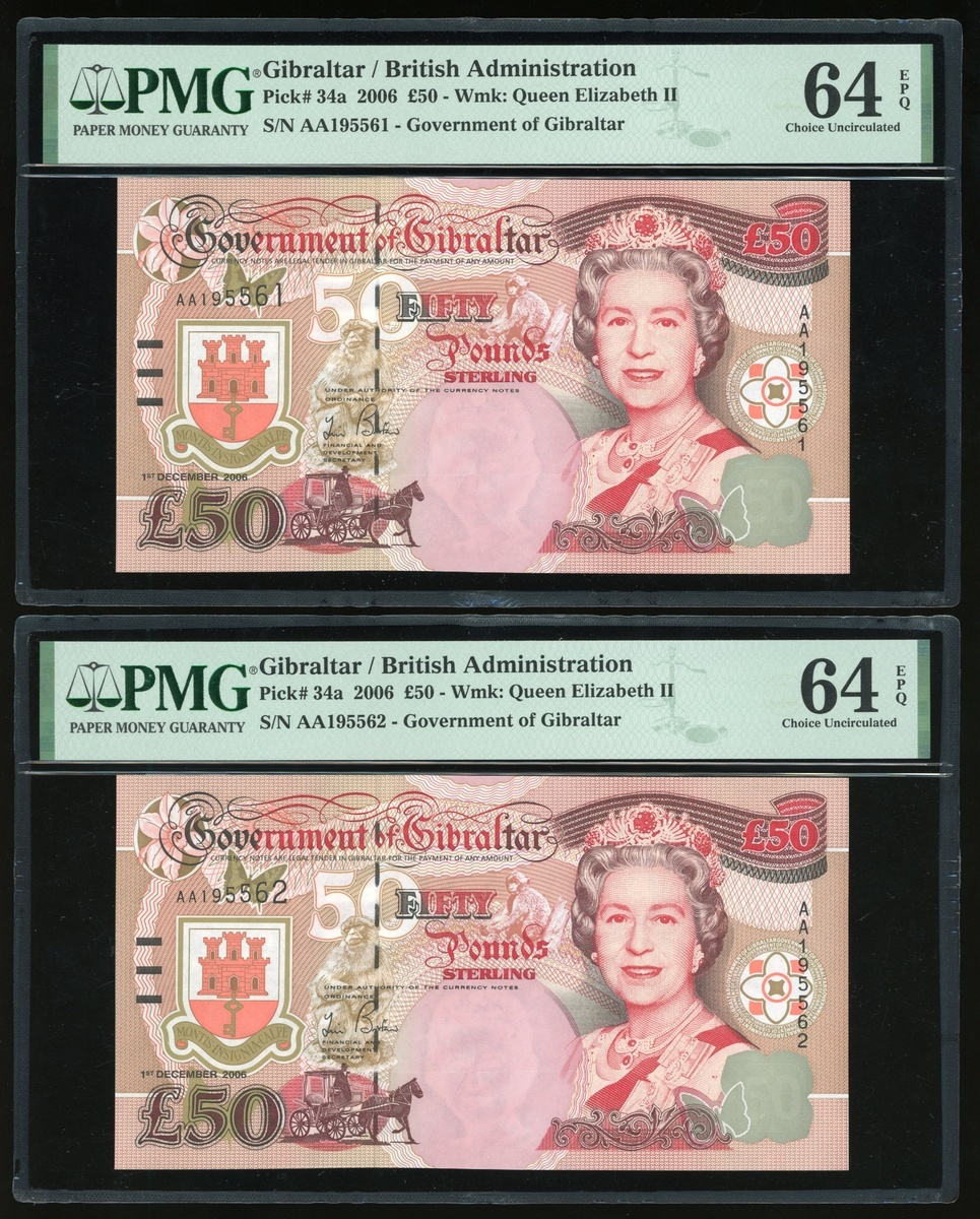 2006年英屬直布羅陀50鎊連號4枚,編號AA195559-562,均PMG 64EPQ