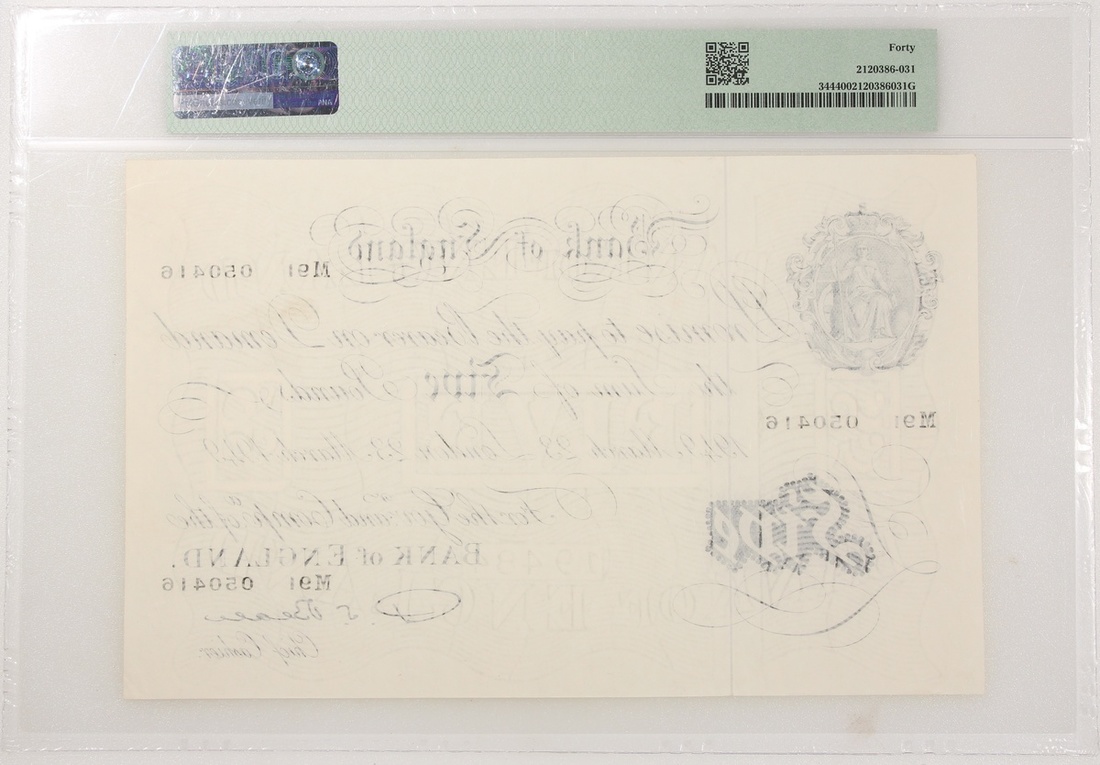 1952年英倫銀行5鎊,編號M91 050416,PMG 40
