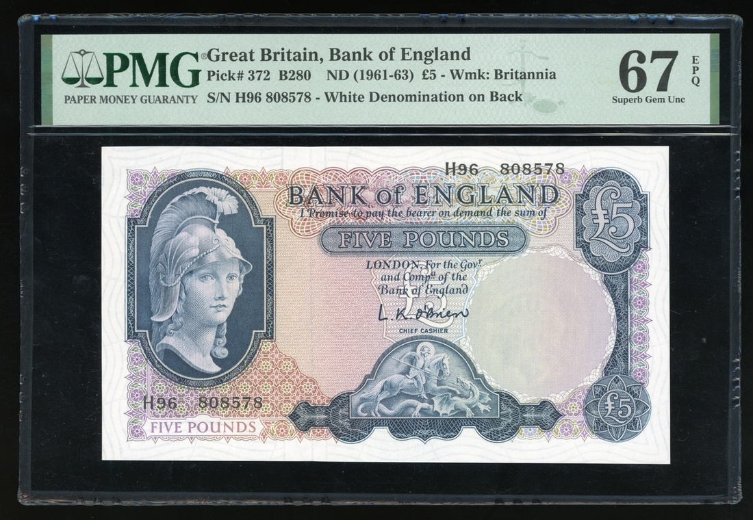 1961-63年英倫銀行5鎊,編號H96 808578,PMG 67EPQ