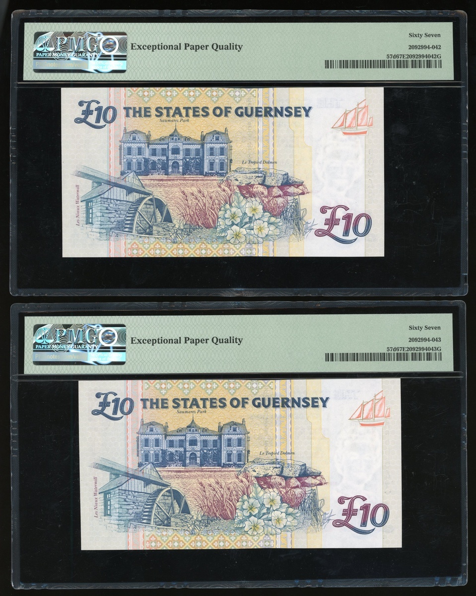 The States of Guernsey, British Administration, a consecutive pair of 10 pounds, ND(1995), serial numbers F600642-643, (Pick 57d), both graded PMG 67EPQ Superb Gem Uncirculated (2).