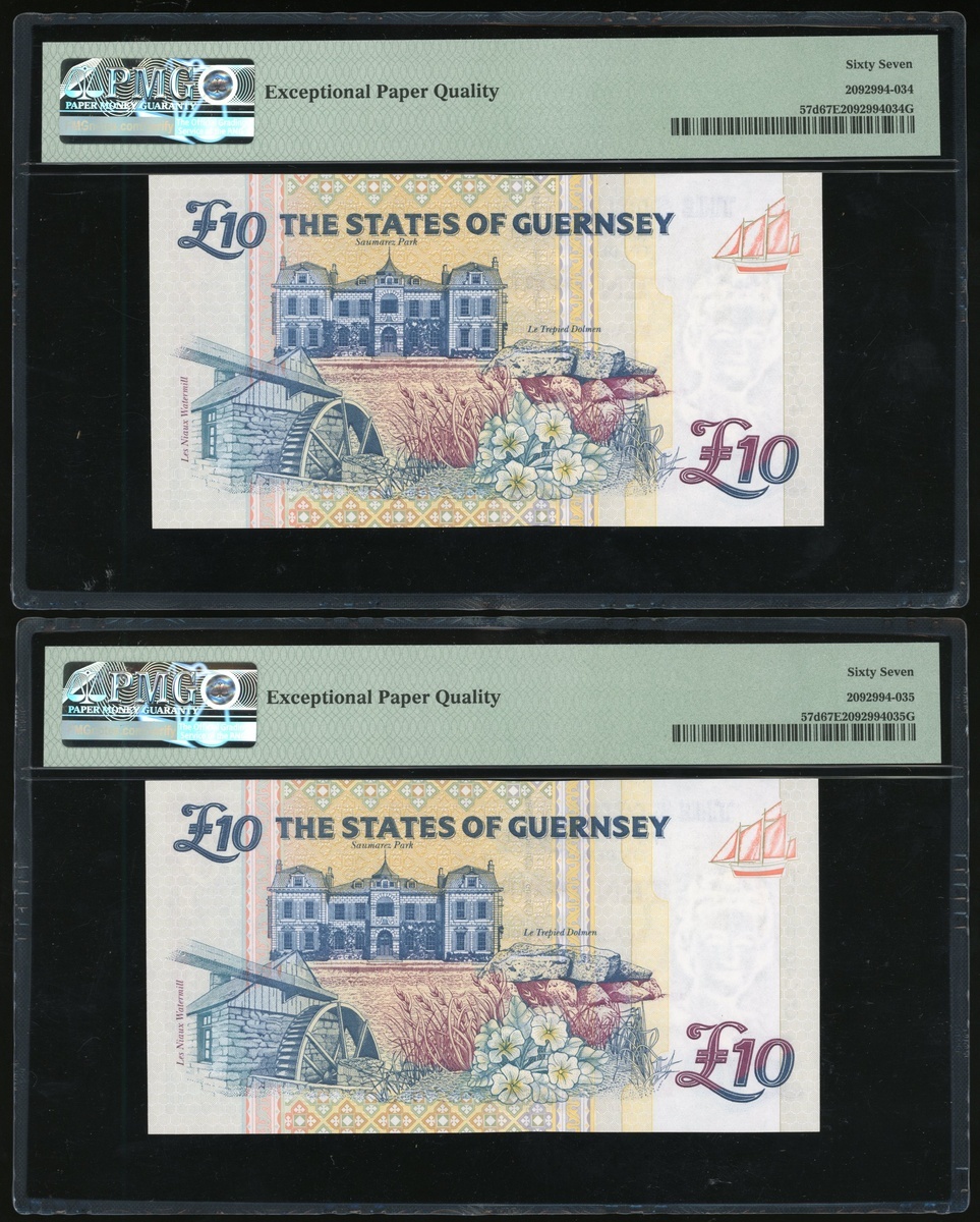 Guernsey, a consecutive pair of £10, ND(1995), serial number F600634-5, (Pick 57d), both PMG 67EPQ.(2)
