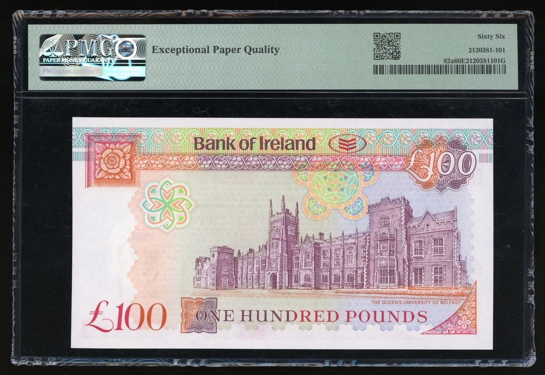 Bank of Ireland, Northern Ireland, 100 pounds, 2005, serial number A441689, (Pick 82a), PMG 66EPQ Gem Uncirculated.