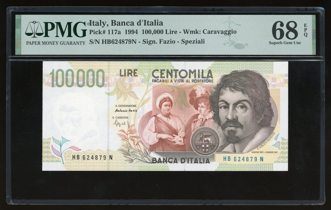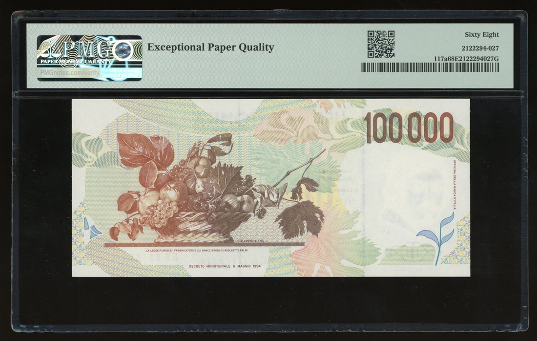 Banca d'Italia, Italy, 100000 Lire, 1994, serial number HB624879N, (Pick 117a), PMG 68EPQ Super Gem Uncirculated, PMG top pop
