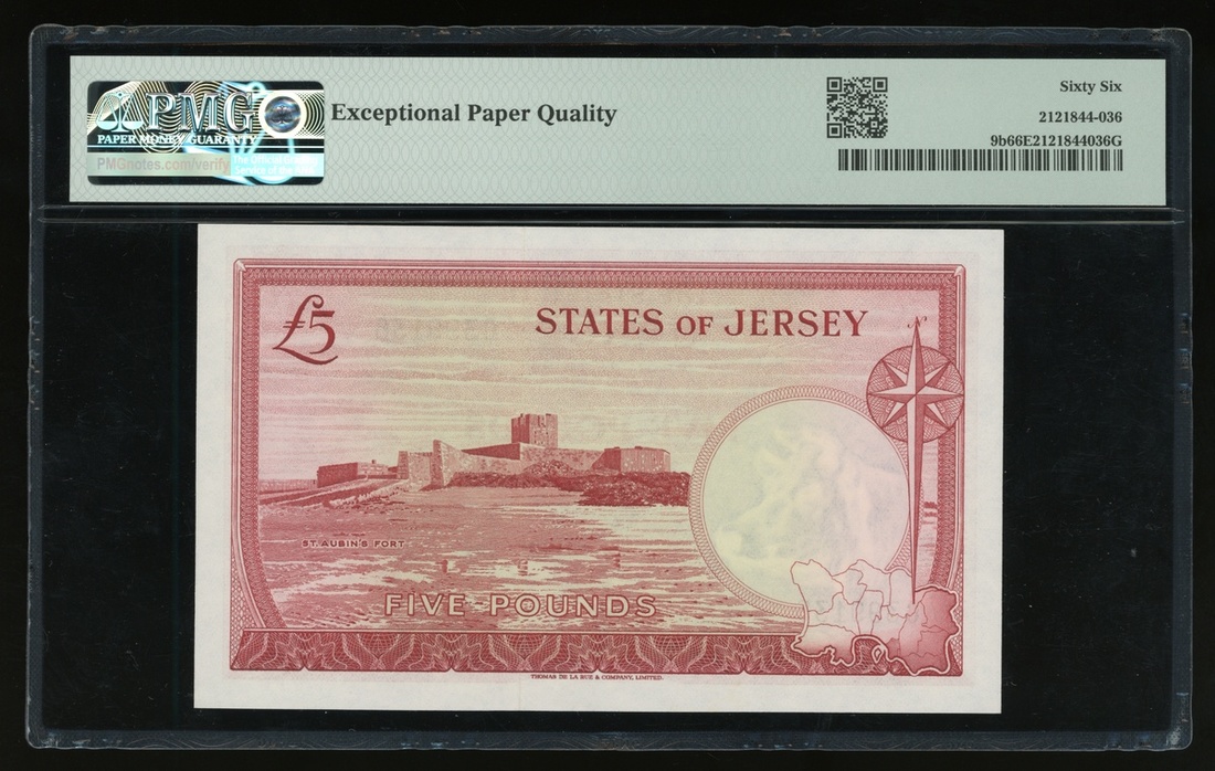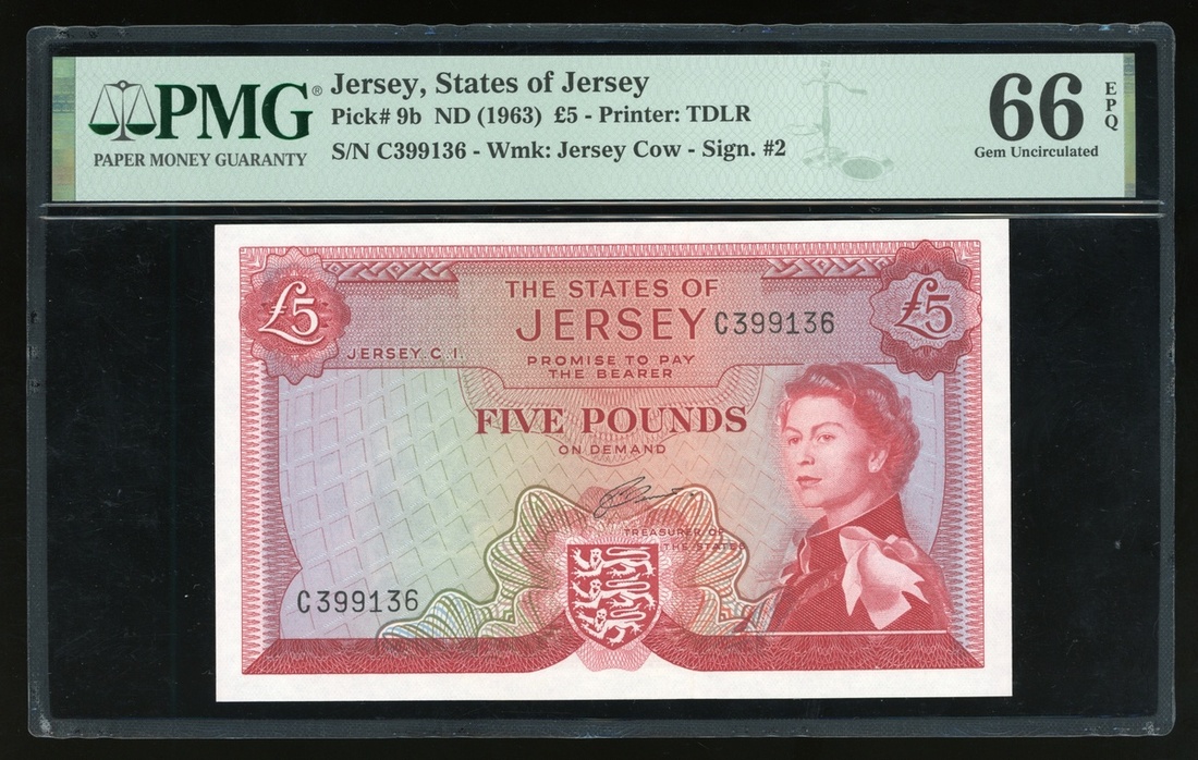 The States of Jersey, 5 pounds, ND(1963), serial number C399136, (Pick 9b), PMG 66EPQ Gem Uncirculated