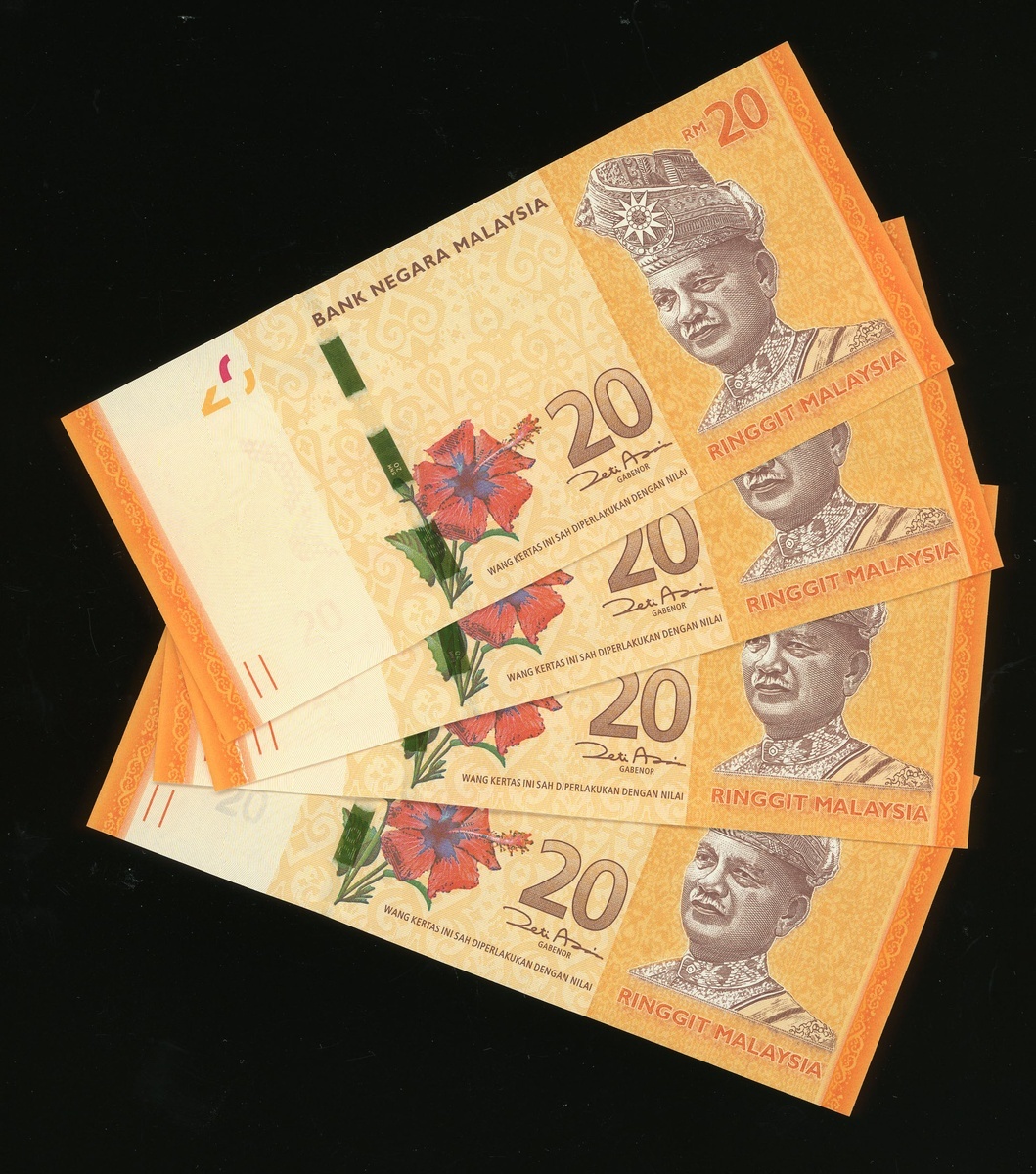 無日期馬來西亞10和20令吉補版鈔共9枚,編號ZB3587505-509 和ZB0082213-216,UNC