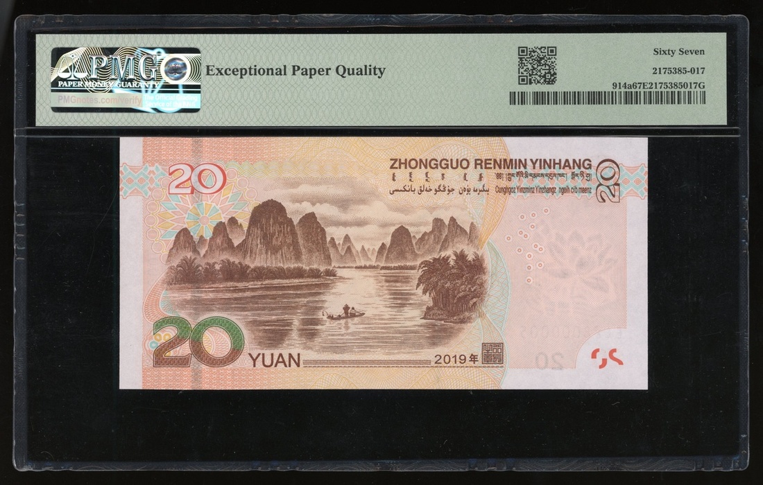 People's Bank of China, 5th series renminbi, 2019, 20 yuan, serial number EC28000005,