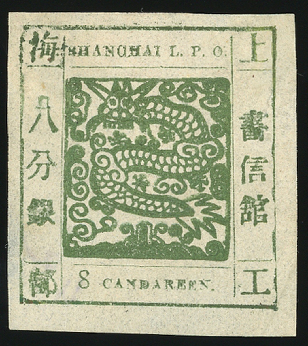 1866年上海工部大龍八分銀新票1枚,第32版式,票面顏色鮮豔,上中品