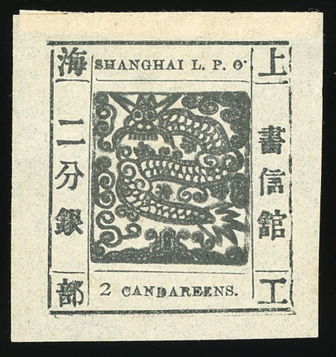 1866年上海工部大龍二分銀新票1枚,四邊寬邊,第41版式,票面顏色鮮豔,上中品
