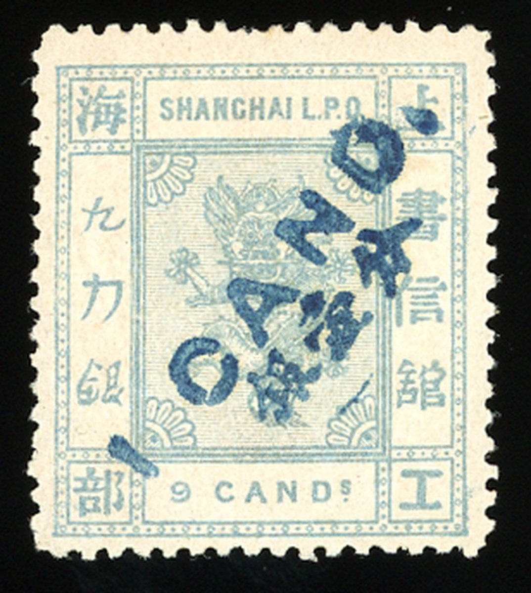 1877年上海工部第四版小龍九分銀加蓋改值銀壹分新票1枚,票面顏色鮮豔,原膠輕貼,上中品