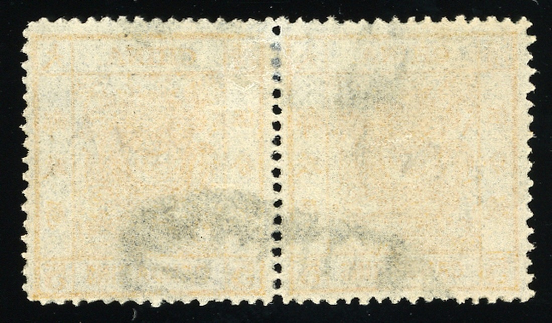 5ca. bistre, horizontal pair, used with Tientsin seal cancelled in black, fine. Chan 3b