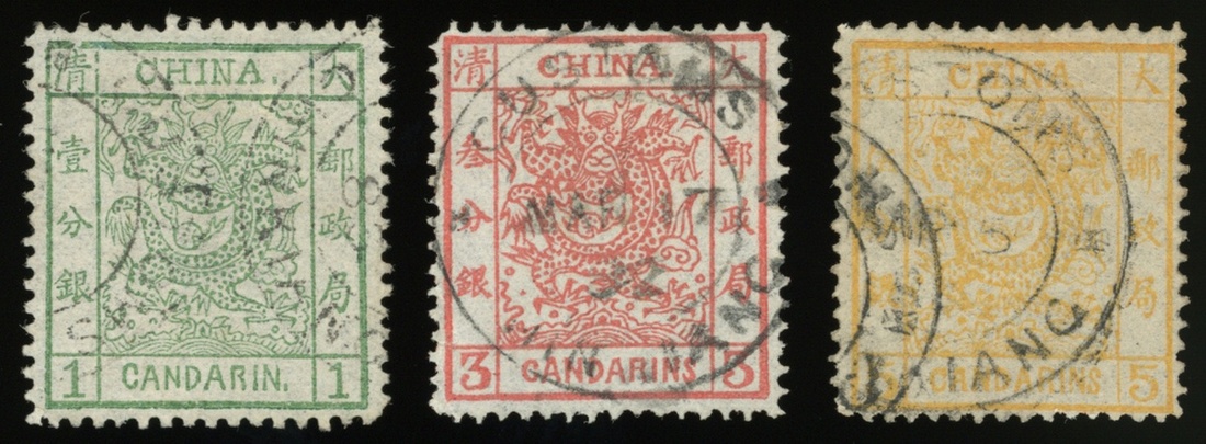 1878年海關大龍舊票1套,均銷鎮江海關日戳,票面顏色鮮豔,齒孔完整,上中品