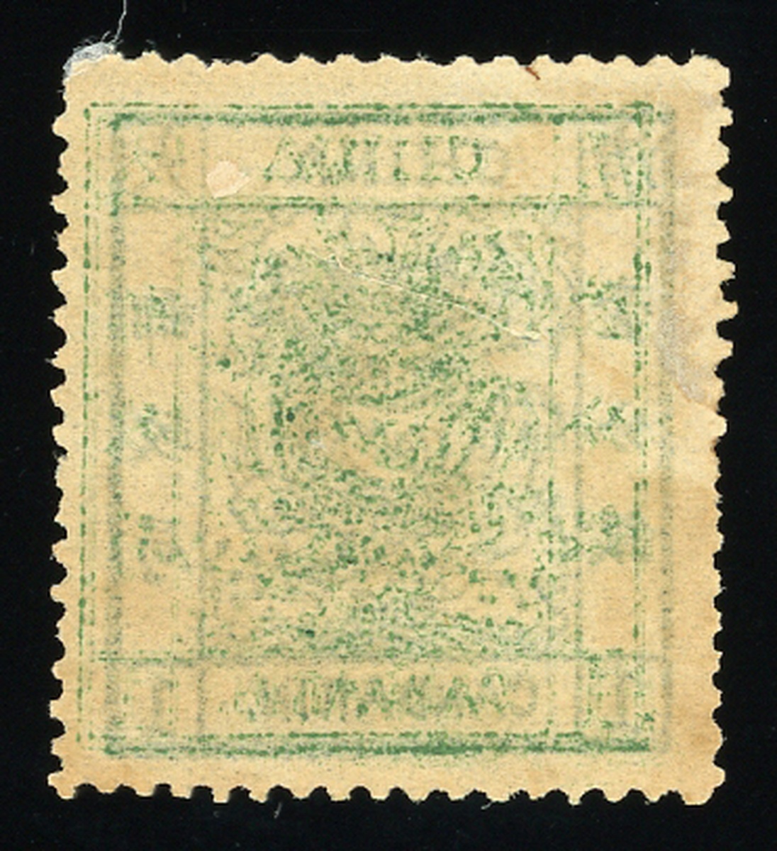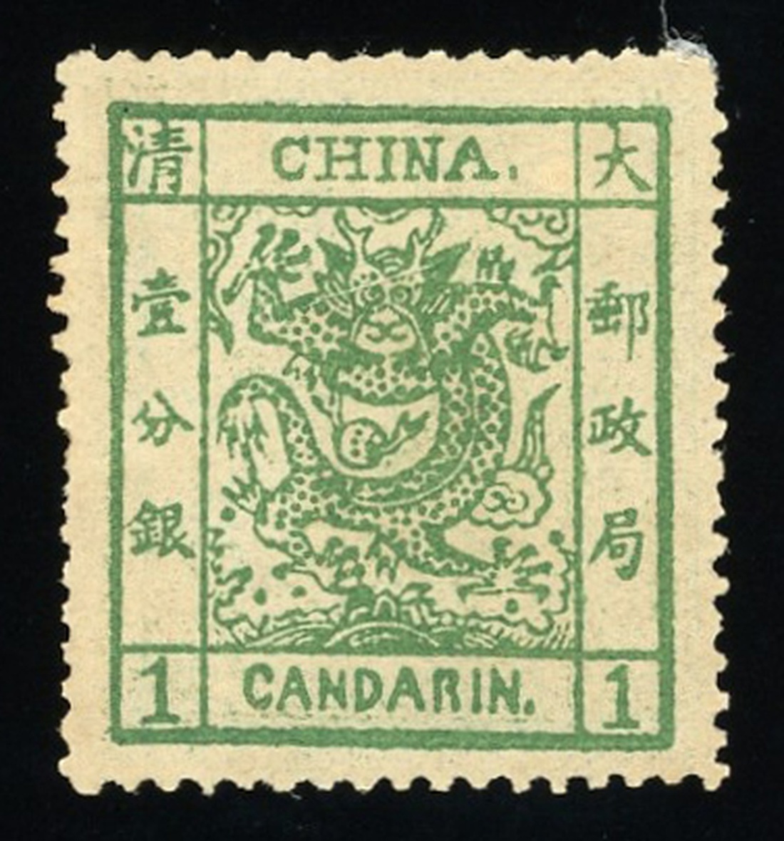 1882年海關闊邊大龍1分銀新票1枚,票面顏色鮮豔,原膠輕貼,中上品