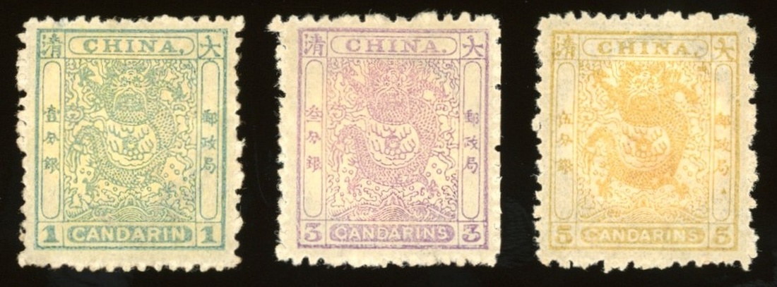 1885年毛齒小龍新票1套,票面顏色鮮豔,齒孔完好,原膠輕貼,上中品