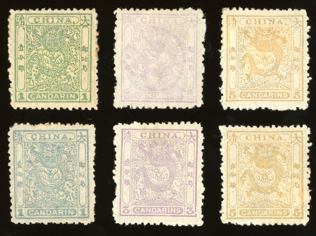 1885年毛齒小龍新票2套,票面顏色鮮豔,齒孔完好,原膠輕貼,上中品
