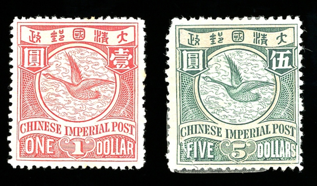 1898年倫敦版有水印盤龍新票一組,包括半分,2分,5分,10分,20分,30分,50分,1元,及5元,票面均顏色鮮豔,原膠輕貼,膠色潤亮,5元左下角微有裂痕,其餘均上中品