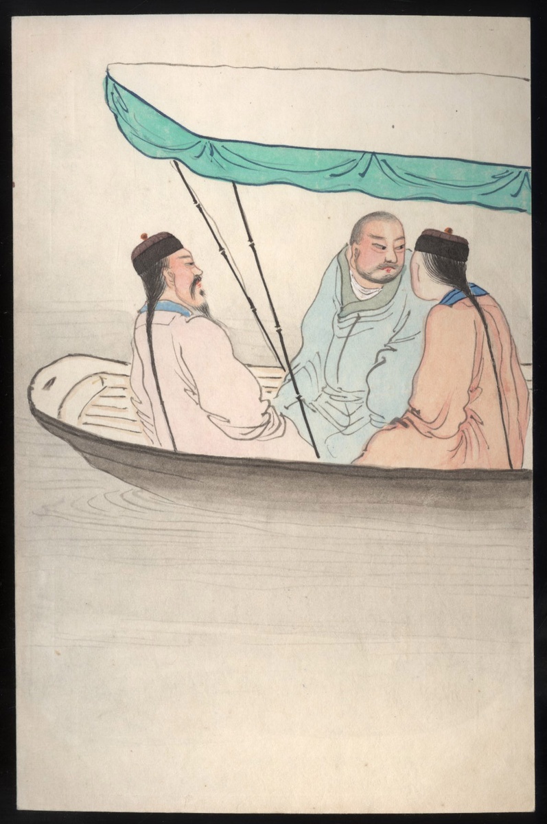 清末手繪明信片1件,片背手繪高僧傳道圖,未實寄,繪製精美,保存完好