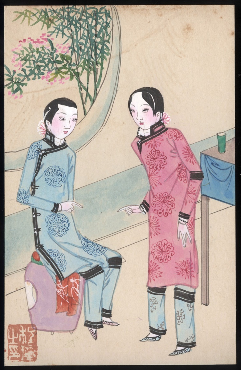 1908年清四次郵資片1件,未使用,片背手繪,美女圖,繪製精美,保存完好