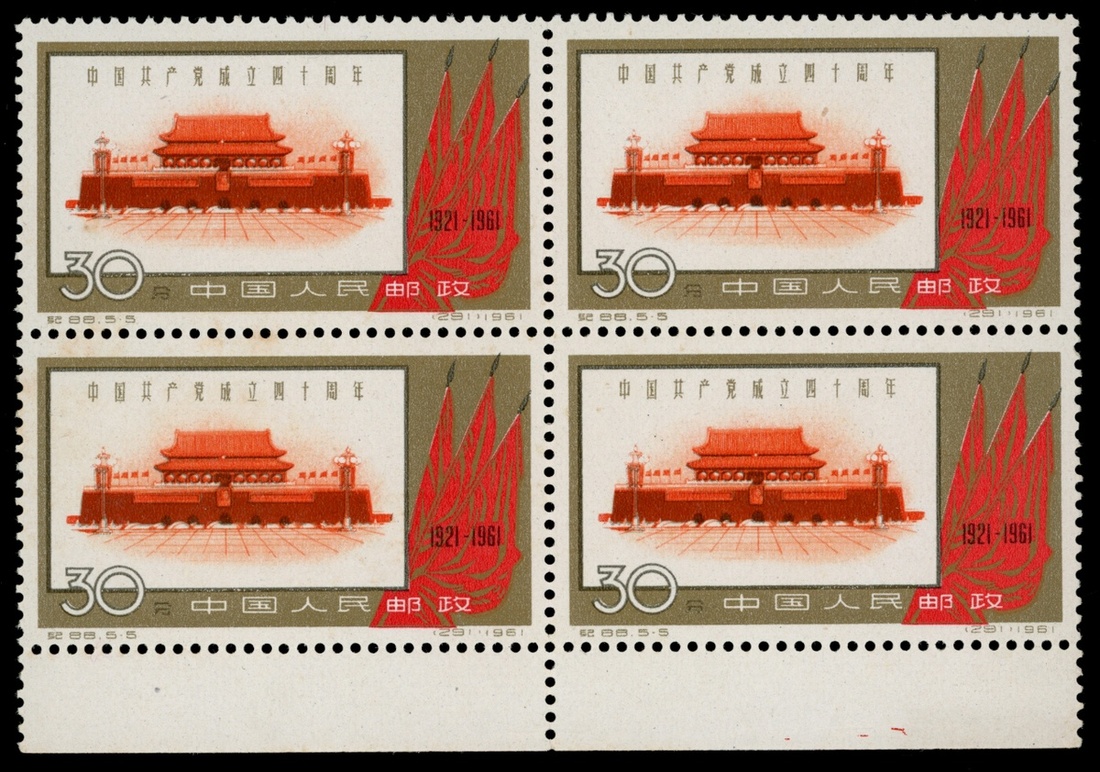 1961年紀88建黨新票1套,票面顏色鮮豔,金粉閃亮,齒孔完整,原膠,膠幹,上中品