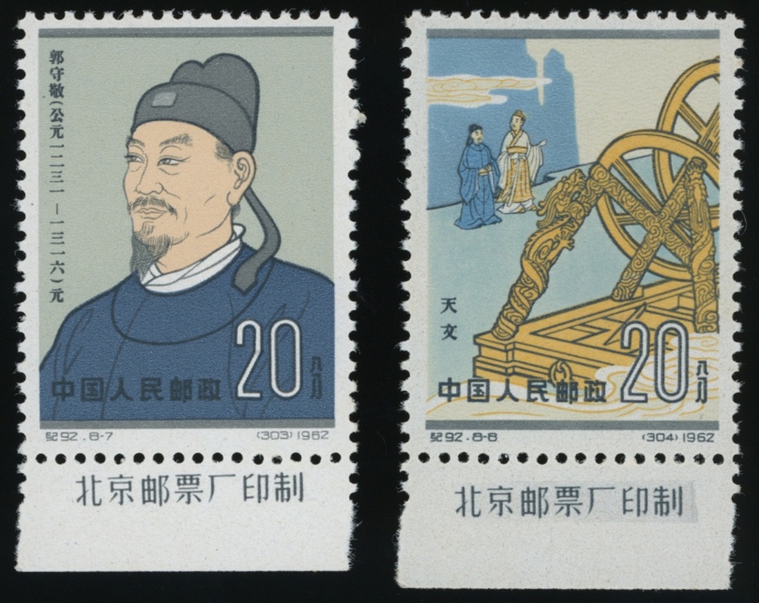 1962年紀92古代科學家第二組新票1套,均帶下廠銘邊紙,票面顏色鮮豔,齒孔完整,原膠,部分膠幹,上中品