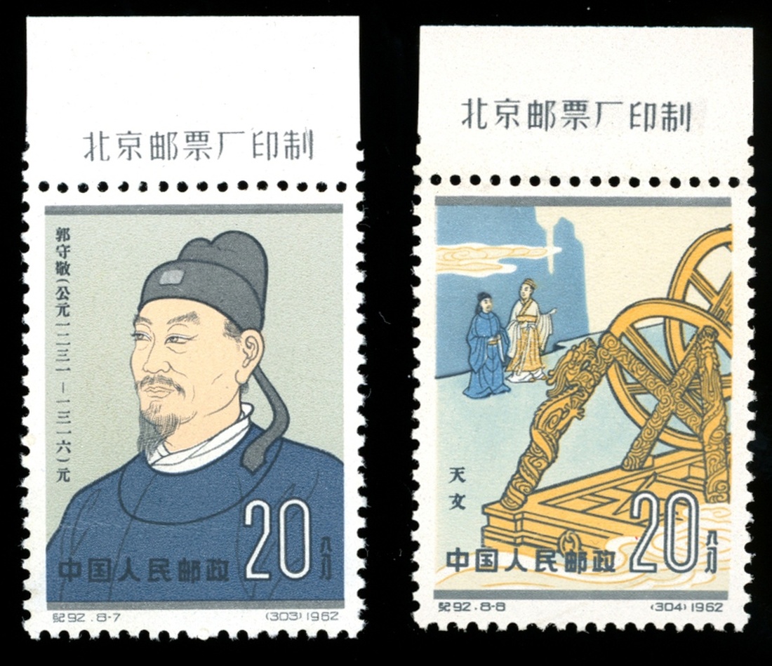 1962年紀92古代科學家第二組新票1套,均帶上廠銘邊紙,票面顏色鮮豔,齒孔完整,原膠,膠色一致,品相佳