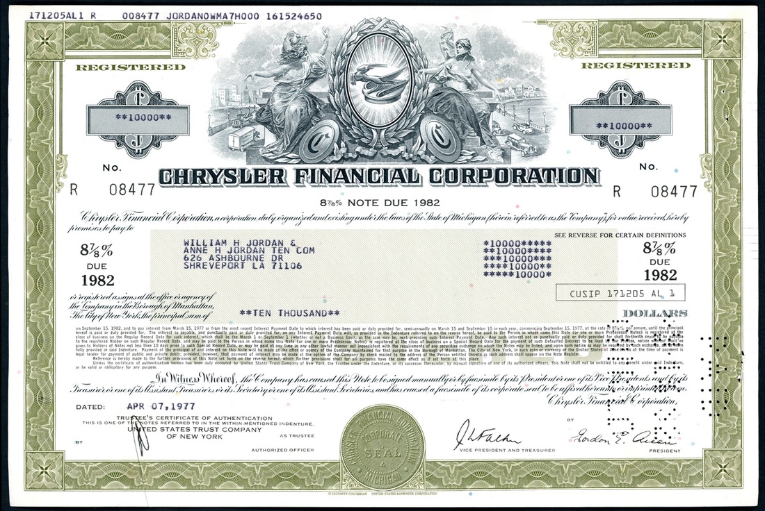 1943-1984 Six U.S. stock certificate, each with a metal engraving printed on the top of each, which is valuable for appreciation and collection. In addition, there is one Russian bond issued in August 1917 (two months before the October Revolution).