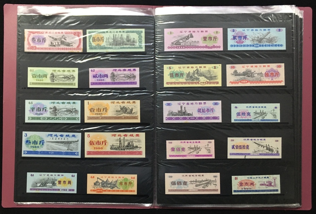 1970-1990年代中國不同城市糧票及收據收藏冊一本, 內容豐富.