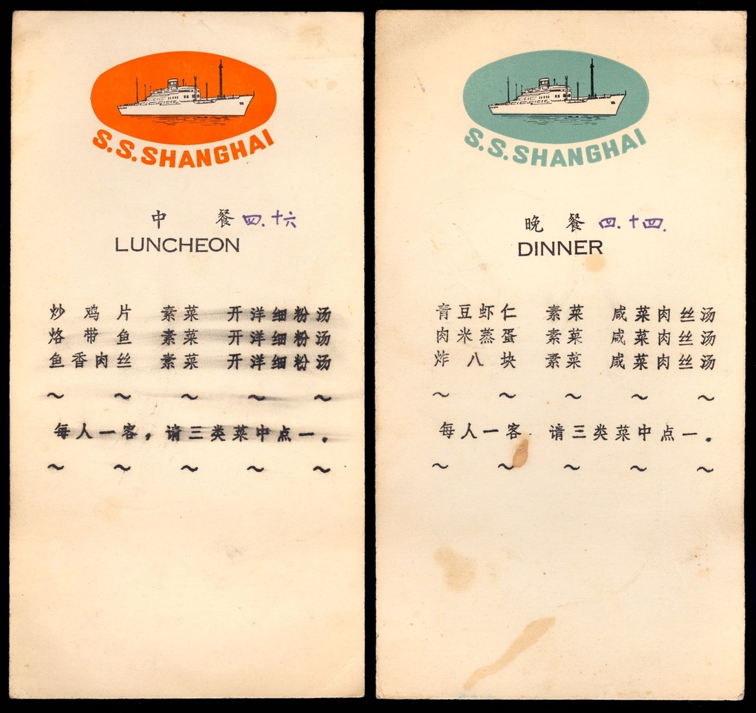1980s two menu cards for the Shanghai cruise.