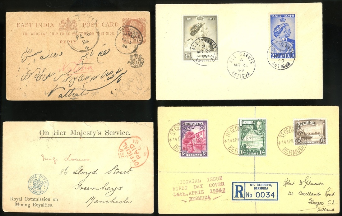 1949 (22 Mar.) Antigua Royal Wedding set on cover and other three covers.