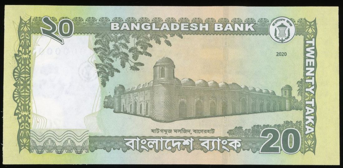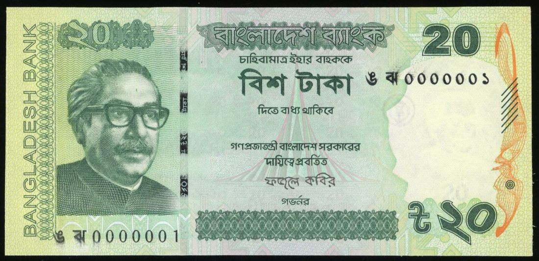 Bangladesh Bank, 20 taka, 2020, low serial number 0000001, (Pick 55A), uncirculated, sold as is, no return