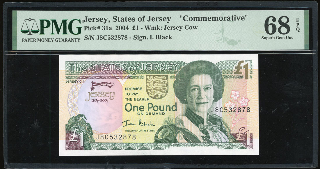 States of Jersey, £1, 2004, commemorative issue for 800th Anniversary of Jersey (1204-2004), serial number J8C532878, (Pick 31a), PMG 68EPQ Superb Gem Uncirculated.