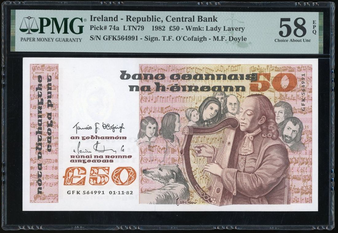1982年愛爾蘭中央銀行50鎊, 編號 GFK 564991, PMG 58EPQ
