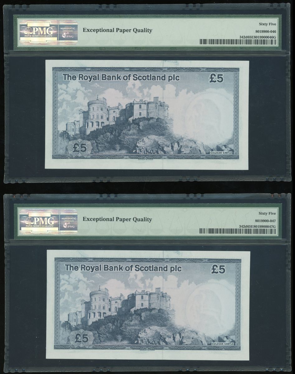 Royal Bank of Scotland Plc, a consecutive pair of £5, 1986, low serial number B/59 000051-52 (Pick 342d), both PMG 65EPQ.(2)