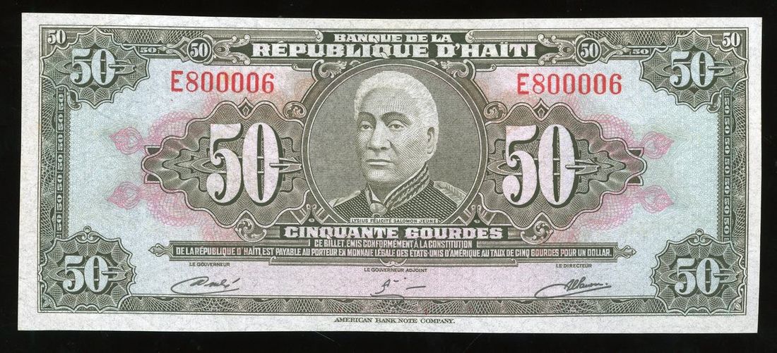 1982年海地塑膠鈔50 gourdes, 編號 E800006, UNC品相, 較為罕見