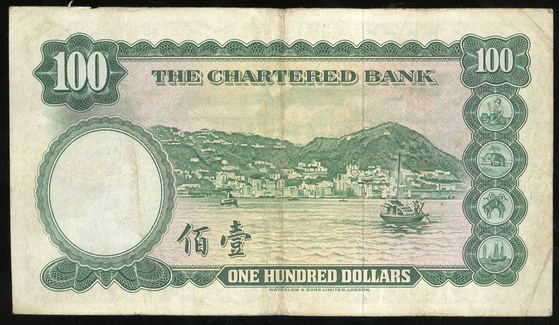 Chartered Bank, Hong Kong, $100, 9 April 1959, serial number Y/M 1183933, (Pick 66), about very fine