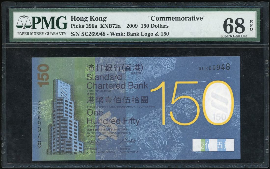 2009年渣打銀行150元,編號SC269948,PMG 68EPQ