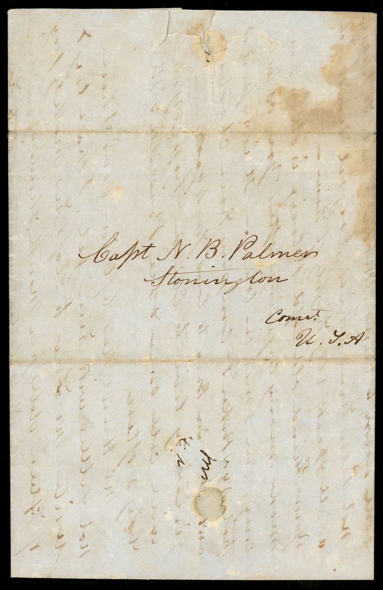 1845年8月27日廣州寄美國一位南極探險家實寄封1件,寄信人為外籍鴉片貿易商,書信內容完整,極具研究價值